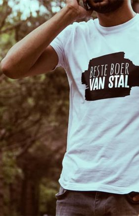 Vind je onze teksten leuk, maar heb jij een beter idee? Selecteer dan hier een type kleding en vul je eigen tekst in. Bekijk het voorbeeld en bestel eenvoudig online!