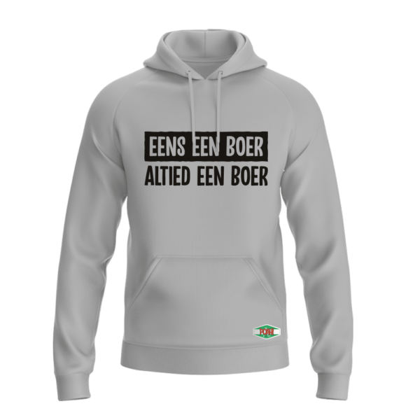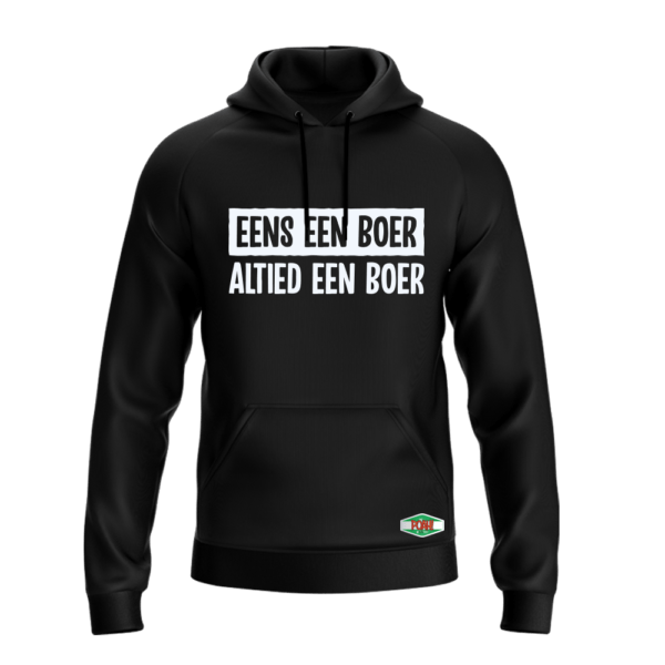 Ontdek onze ‘Vaak bu’j te bang’ hooded sweatshirt. Een echte boer hoort toch een bijpassende trui te hebben of niet soms?