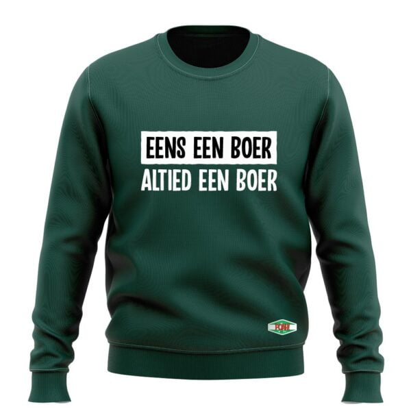 Ontdek onze ‘Vaak bu’j te bang’ sweatshirt. Een echte boer hoort toch een bijpassende trui te hebben of niet soms?